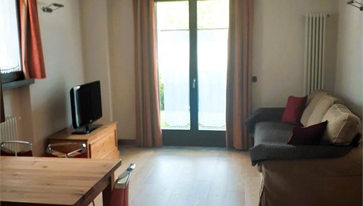Posto al piano terra della palazzina gode di giardino privato, soggiorno con divano letto matrimoniale, angolo cottura a vista attrezzato di lavastoviglie, camera matrimoniale, camera con letto a castello, bagno con doccia e lavatrice.