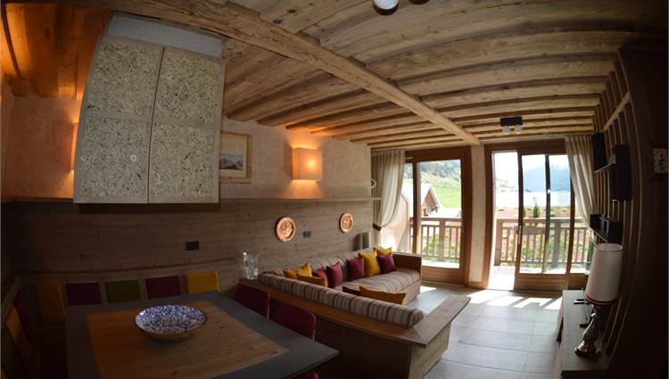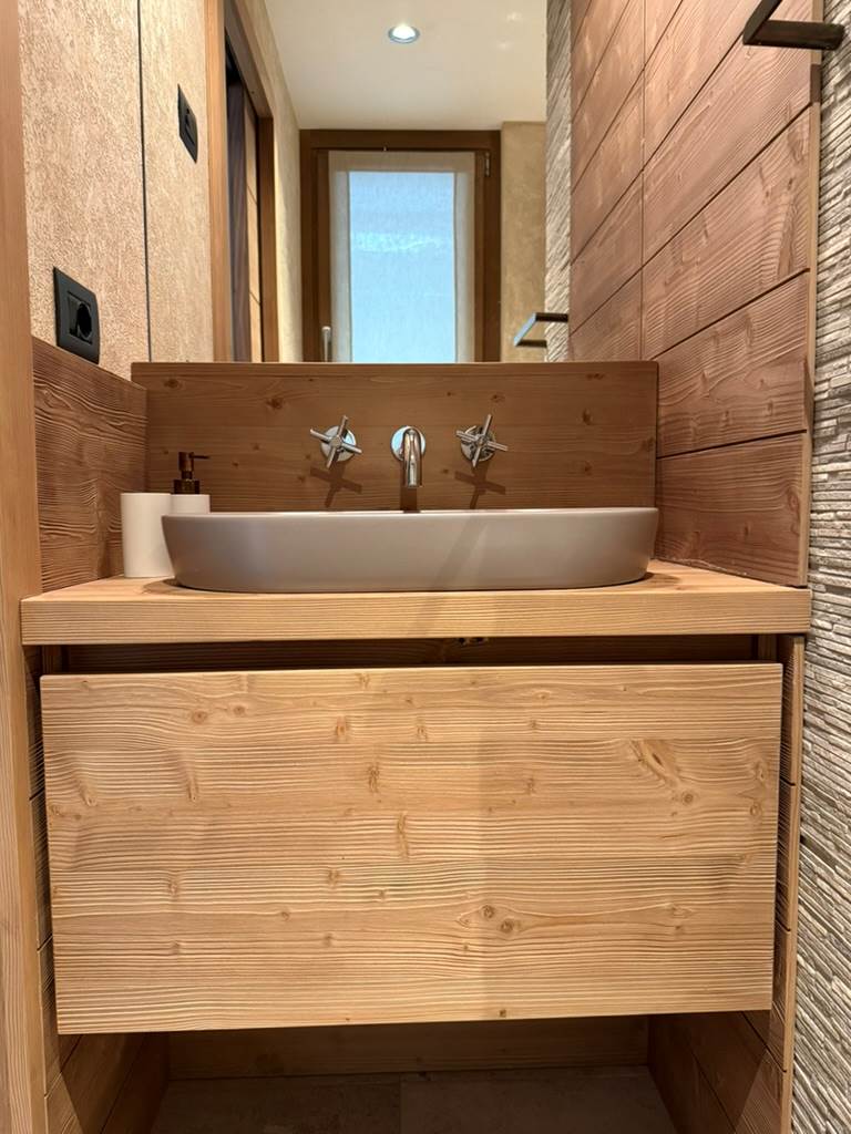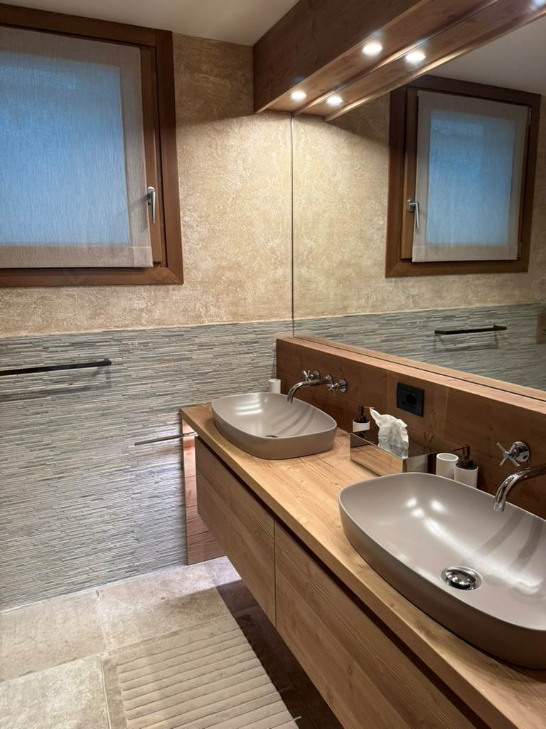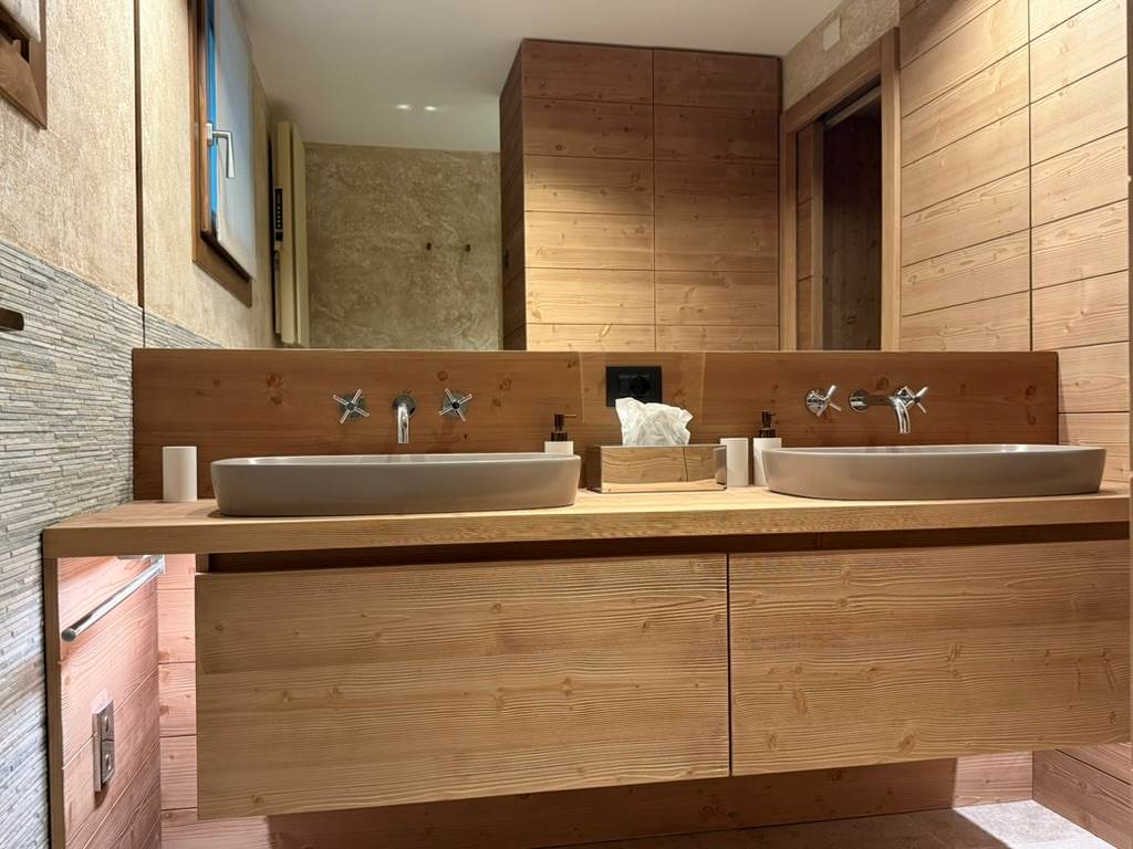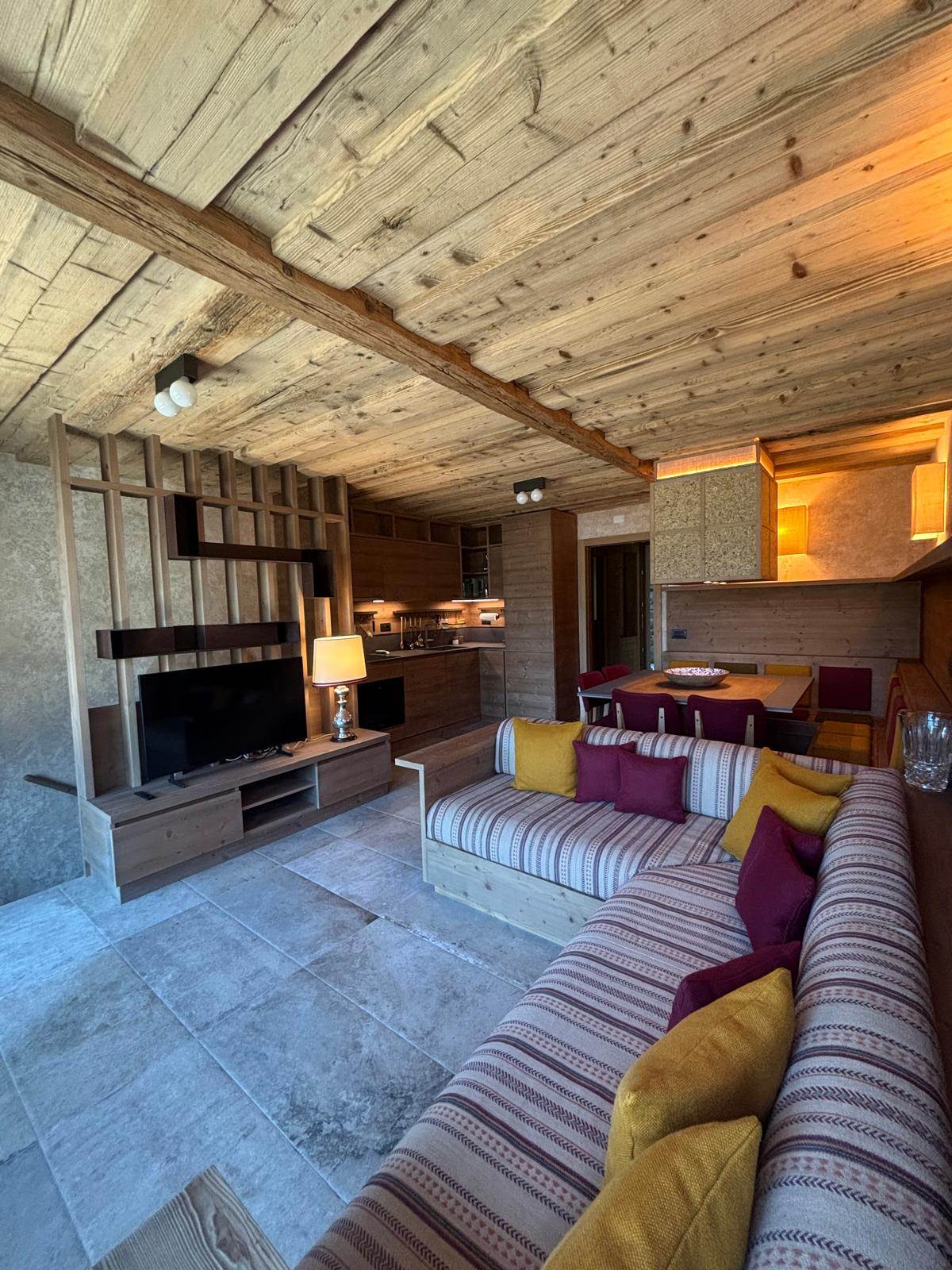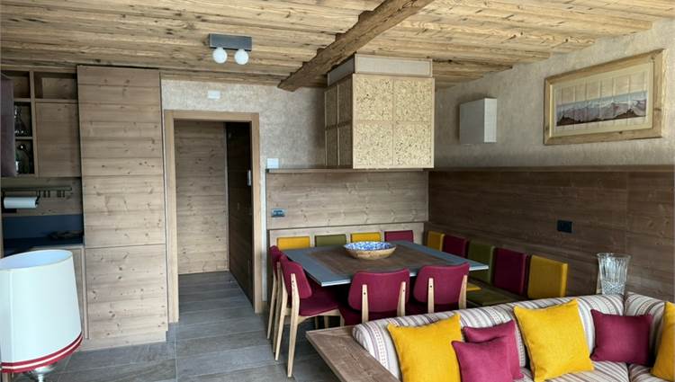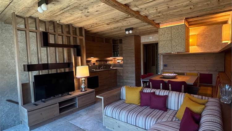 L’immobile si sviluppa su due livelli per una superficie complessiva di circa 85 mq, offrendo spazi eleganti, funzionali e perfettamente integrati con l’atmosfera alpina.