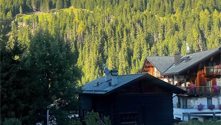 Il trilocale posto al piano terra dello chalet è composto da soggiorno con angolo cottura a vista, tre balconi ,due camere da letto e due bagni.